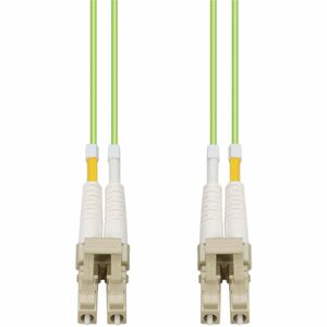 This is a 6m LC to LC Lime Green OM5 Duplex OFNP (Plenum-Rated) Fiber Patch Cable. OM5 fiber optic cable is an advanced multimode fiber optimized for high-speed, high-bandwidth applications, supporting up to 100G over 150 meters with the added benefit of Wideband support for future-proofing networks. It is ideal for data centers and enterprises looking to scale their networks efficiently while maintaining flexibility for future technology upgrades. OFNP plenum fiber cable jackets are engineered for use in air-handling spaces, such as ceilings and ducts, offering the highest fire resistance to prevent flame spread and reduce smoke in the event of a fire. These cables meet stringent safety standards, making them the top choice for businesses that need safe, reliable networking in critical building areas. The Standard Boot option provides reliable and straightforward connections for fiber cables, making it an economical choice for various networking applications. Ideal for businesses that require dependable performance without the complexity, this option ensures consistent data transmission in everyday network setups. Our cables are TIA compliant, ensuring performance for all networking needs.