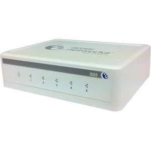 The SD5 palm-sized 10/100Mbps Ethernet Switch is an excellent choice for small workgroups. You can connect any port to either a 10Mbps or 100Mbps network to multiply bandwidth, boost response time, and satisfy heavy load demands. With all ports supporting Auto-MDIX, you no longer need to worry about whether to use straight-through or crossover cables as the switch will compensate automatically
