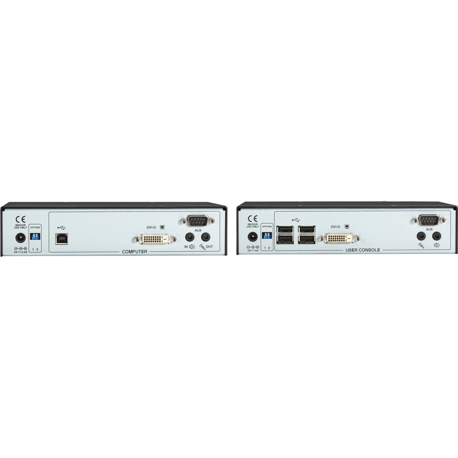 As a point-to-point KVM extender, use CAT6 cable to connect a transmitter and a receiver to deliver perfect DVI, audio, and USB. You can configure this setup to go to multiple screens at one time or add new units for additional functionality.