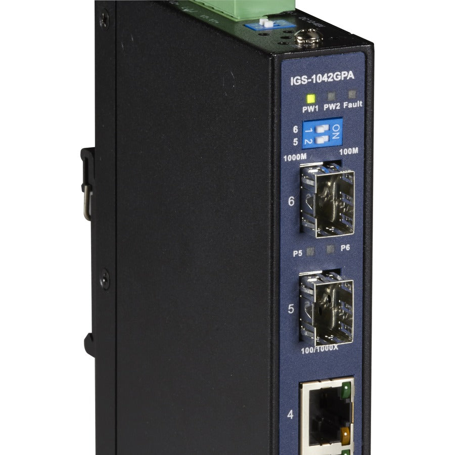 Reliable and scalable. The very reliable LGH1000 Industrial Ethernet Switch, (4) 10/100/1000-Mbps, (2) GE SFP, is designed for the far edges of your network. Use it in cold, dirty, indoor environments with temperature extremes of -40° to +70°C, such as loading docks or monitoring stations. This rugged switch comes in an IP31-rated enclosure that can be DIN-rail or wall mounted.