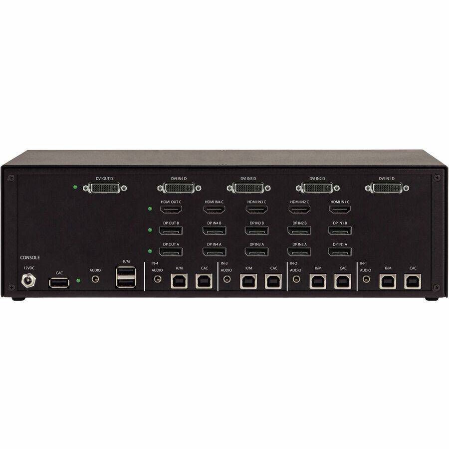 Black Box Secure NIAP 4.0 Certified KVM Switch - 4-Port, Quad-Monitor, DVI, HDMI, DisplayPort, CAC