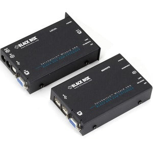 The ServSwitch Wizard™ USB SRX KVM Extender, single-video, from Black Box, combines VGA, USB 1.1 or USB 2.0, and audio, and sends them up to 164 feet across a single CATx cable. It's easy to fine-tune the video image on the remote unit and get crystal-clear stereo audio and transparent USB.