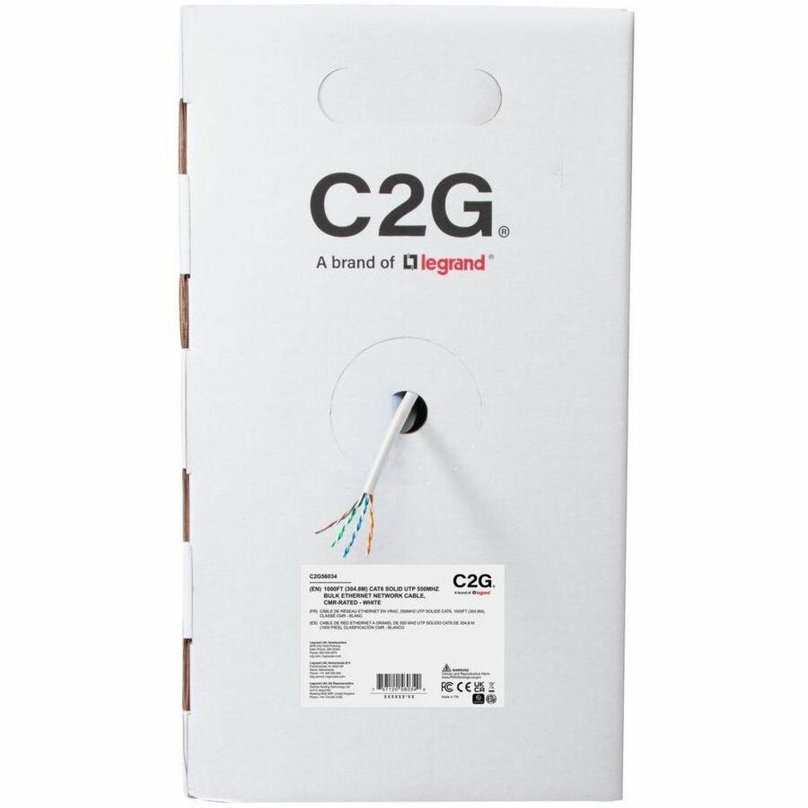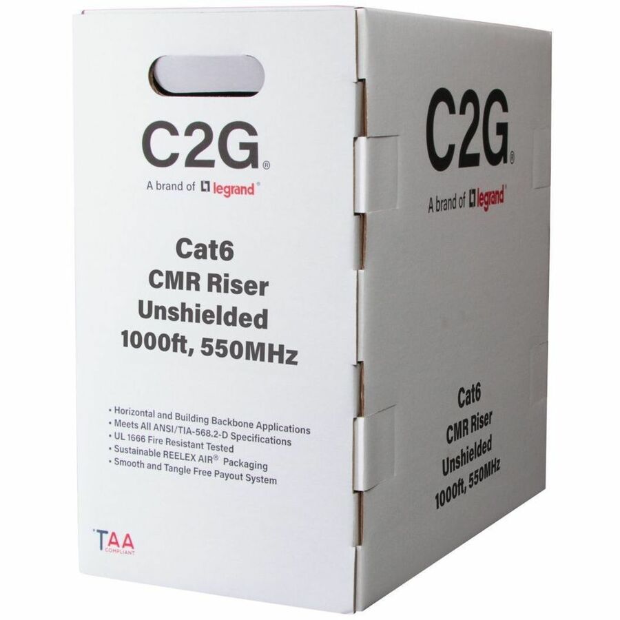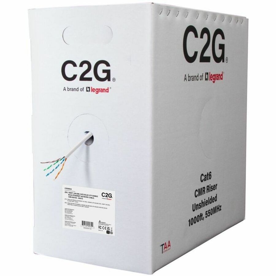 C2G 1000ft (304.8m) TAA-Compliant Cat6 Unshielded (UTP) Ethernet Cable with Solid Conductors-Riser CMR-Rated - White