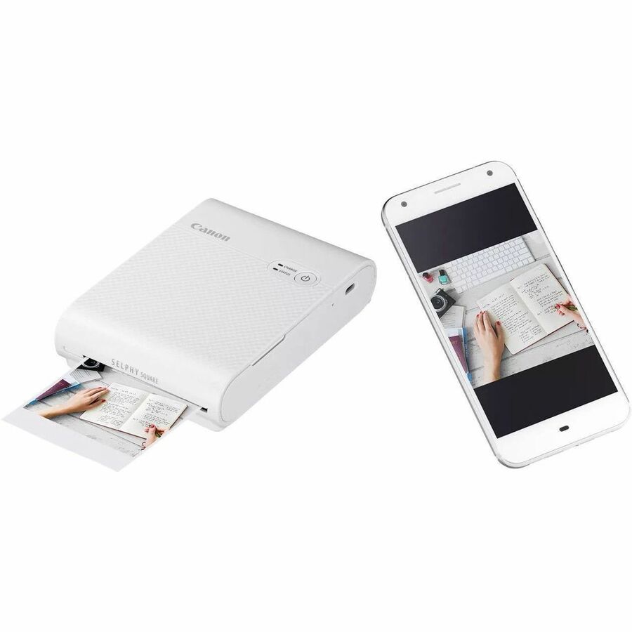 High-quality prints aren't just easier to get with the SELPHY Square QX10 compact photo printer, they're more accessible, too. Weighing less than one pound and conveniently sized, this portable printer lets you turn your digital images into impressive prints, whether you're at a party, traveling or simply in the comforts of your dorm room or home. Dye-sub technology means great, fast-drying 2.7" x 2.7" prints that can last up to 100 years, and the free, downloadable Canon SELPHY Photo Layout app lets you add creative templates, stickers, filters and more. Use the paper's adhesive backing to personalize your next crafting or decorating project, plus rely on the built-in battery to print images on the spot, without worrying about wires or cables. With the SELPHY Square QX10 compact photo printer and app, you'll have everything you need to get your creativity flowing.