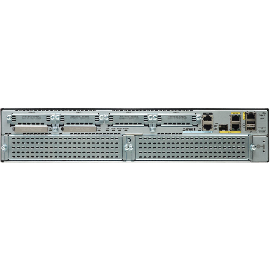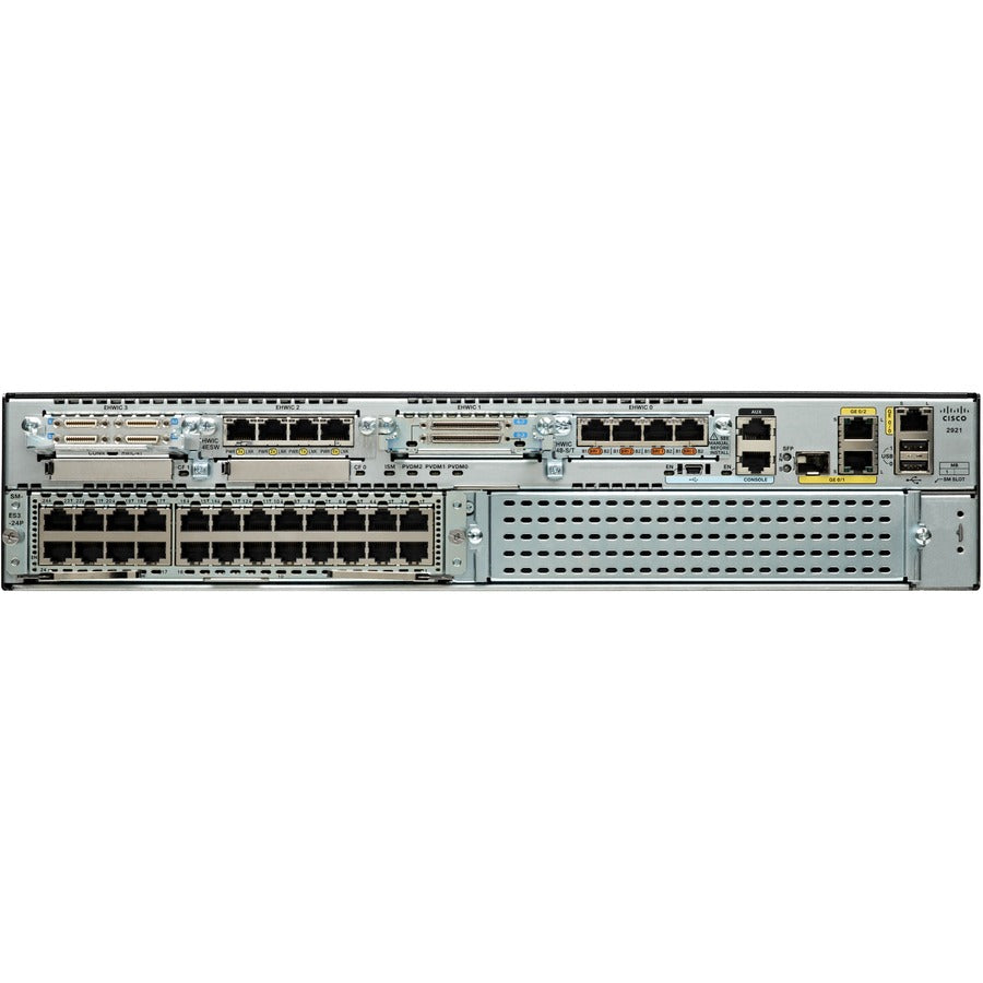 The Cisco 2921 Integrated Services Router (ISR) delivers highly secure data, voice, video, and application service. The modular design of the router provides maximum flexibility, allowing you to configure your router to meet evolving needs. The routers offer features such as hardware-based virtual private network (VPN) encryption acceleration, intrusion-protection and firewall functions, and optional integrated call processing and voice mail.