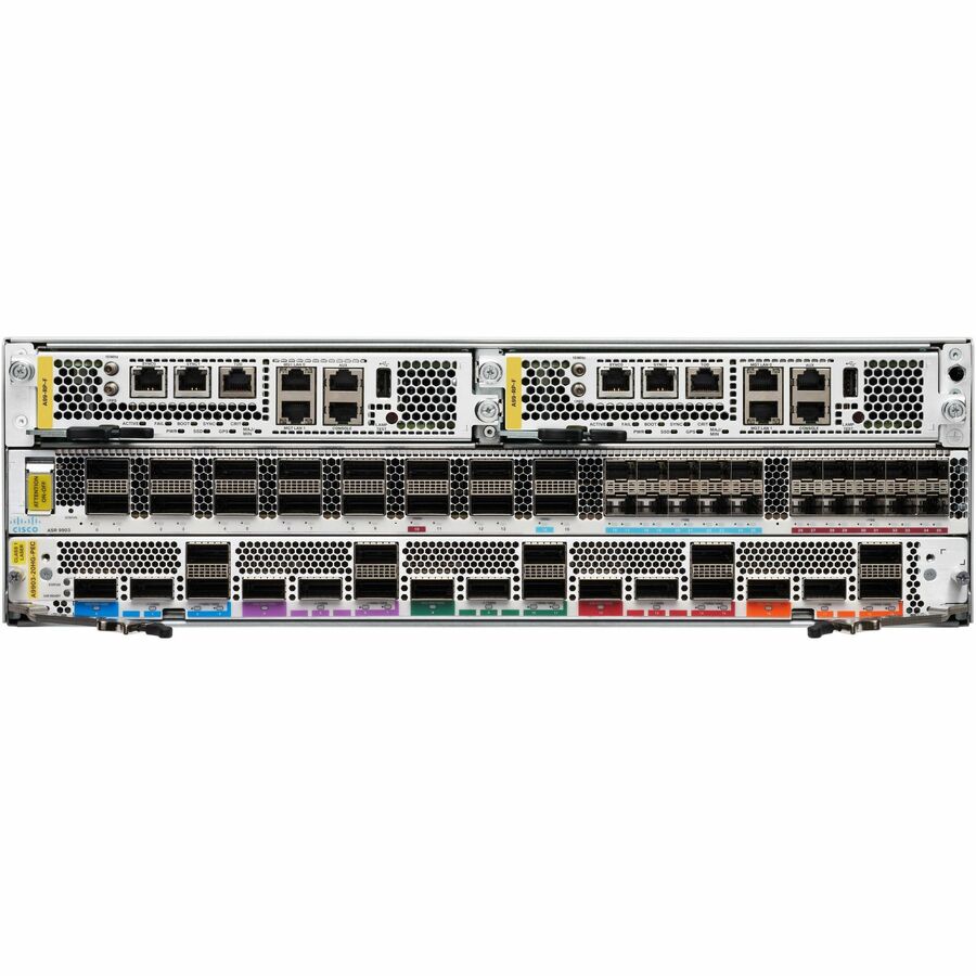 Part of the Cisco® ASR 9000 Series, the Cisco ASR 9903 Router is a compact, high-performance router that delivers up to 3.6 Tbps of nonblocking, full-duplex capacity in a Three-Rack-Unit (3RU) form factor. Based on the same Cisco IOS® XR software image as the other routers in the Cisco ASR 9000 Series, the Cisco ASR 9903 Router delivers the features and services found on the ASR 9000 Series platforms, allowing customers to standardize on the same Cisco IOS XR operating system. Multiple port rates are supported by ASR 9903: 400 Gigabit Ethernet, 200 Gigabit Ethernet, 100 Gigabit Ethernet, 40 Gigabit Ethernet, 25 Gigabit Ethernet and 10 Gigabit Ethernet, so it gives customers the flexibility to mix and match interface types on the same chassis and offers operators the readiness for mass-scale networking.