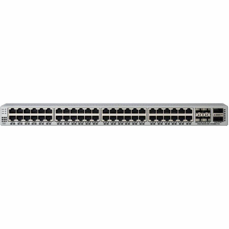 Cisco Nexus 9348GC-FX3 Ethernet Switch - 48 Ports - Manageable - Gigabit Ethernet, 25 Gigabit Ethernet, 100 Gigabit Ethernet - 10/100/1000Base-T, 25GBase-T, 100GBase-X - Refurbished - 3 Layer Supported - Modular - 178 W Power Consumption - Optical Fiber, Twisted Pair - 1U - Rack-mountable - 1 Year Limited Warranty