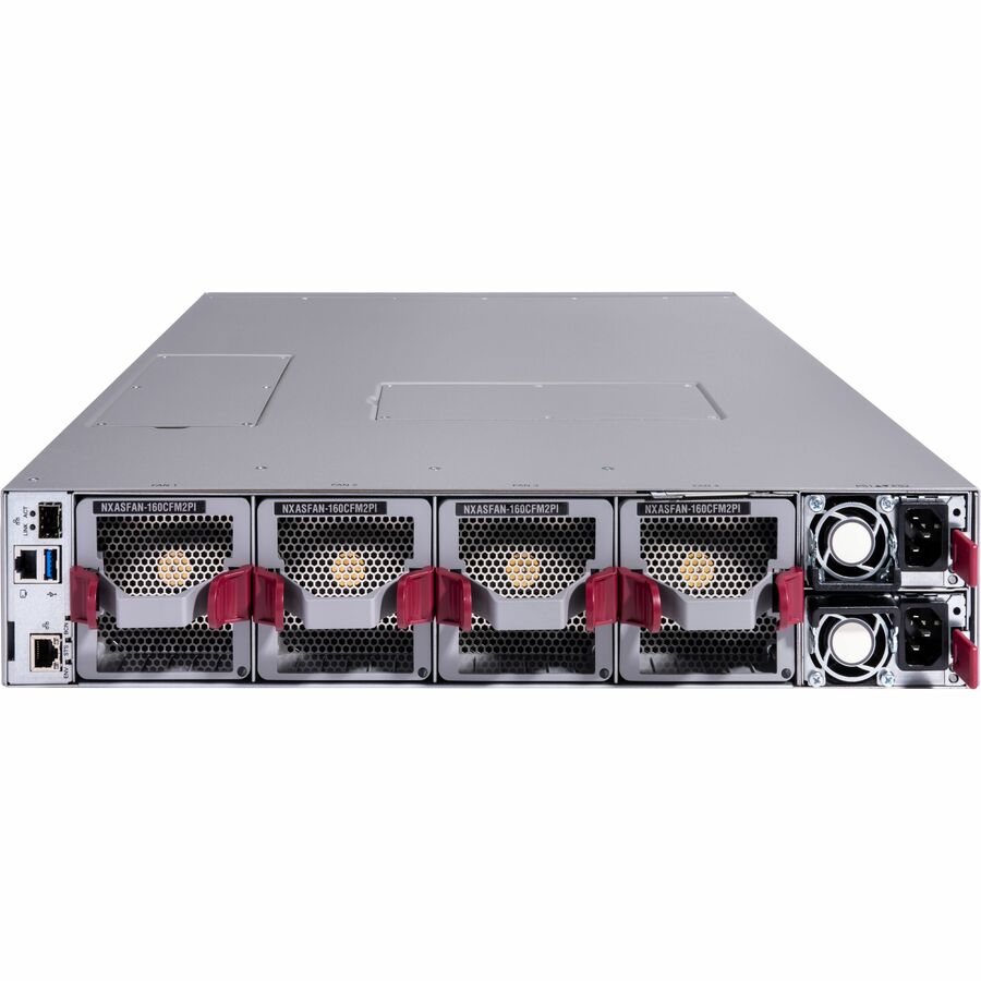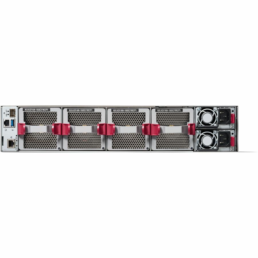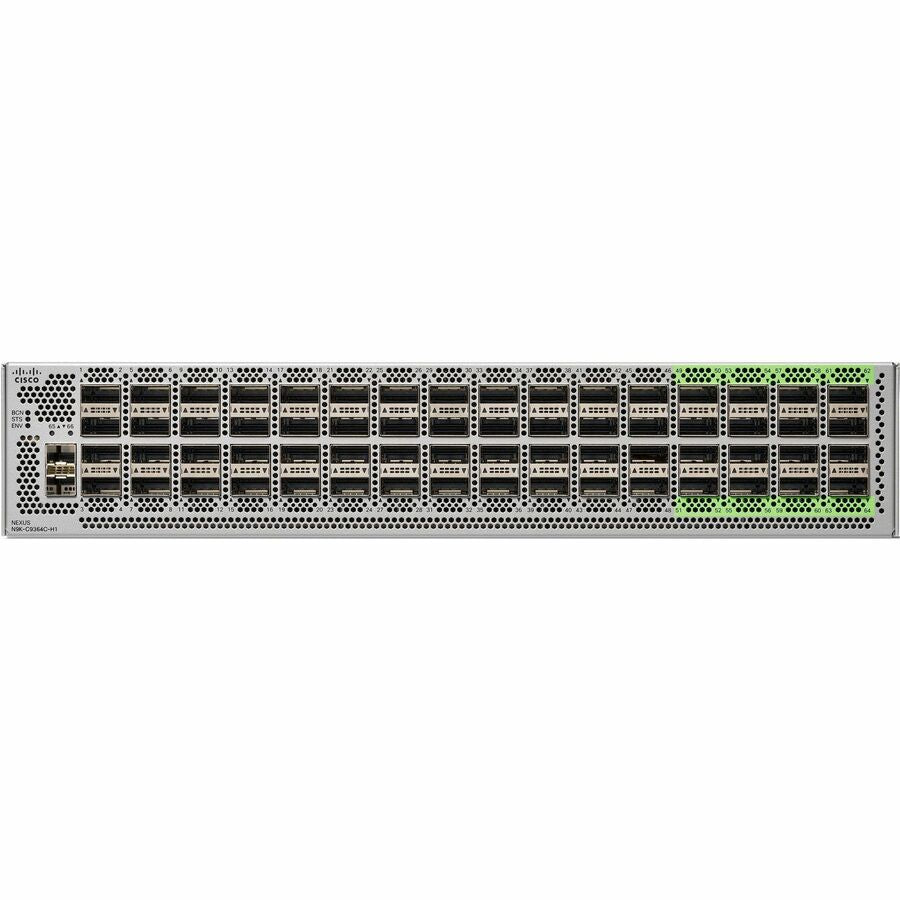 The Cisco Nexus 9364C-H1 is a 2-Rack-Unit (2RU) 64-port 100 Gigabit Ethernet switch that supports 12.8 Tbps of bandwidth. The switch provides 40MB of on-die packet buffer with MACsec capability on 16 ports.