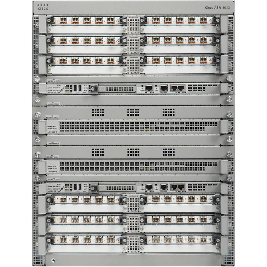 The Cisco ASR 1000 Series supports Cisco IOS® XE Software, a modular operating system with modular packaging, feature velocity, and powerful resiliency. The Cisco ASR 1000 Series Embedded Services Processors (ESPs), which are based on Cisco Flow Processor™ technology, accelerate many advanced features such as crypto-based access security; Network Address Translation (NAT), thread defense with Cisco Zone-Based Firewall (ZBFW), deep packet inspection (DPI), Cisco Unified Border Element (CUBE), and a diverse set of data-center-interconnect (DCI) features. These services are implemented in Cisco IOS XE Software without the need for additional hardware support.