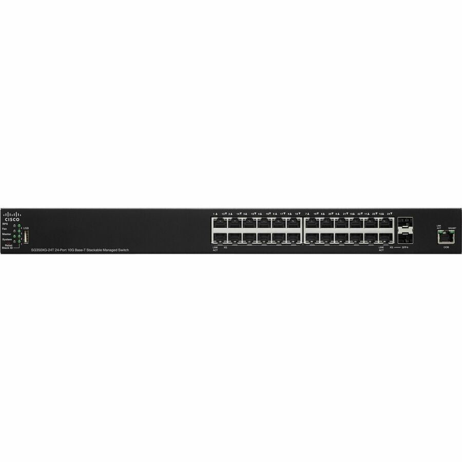 Cisco SG350XG-24T 24-Port 10GBase-T Stackable Managed Switch - 24 Ports - Manageable - 10 Gigabit Ethernet - 10GBase-T - Refurbished - 3 Layer Supported - Modular - Twisted Pair - 1U - Rack-mountable, Desktop - Lifetime Limited Warranty