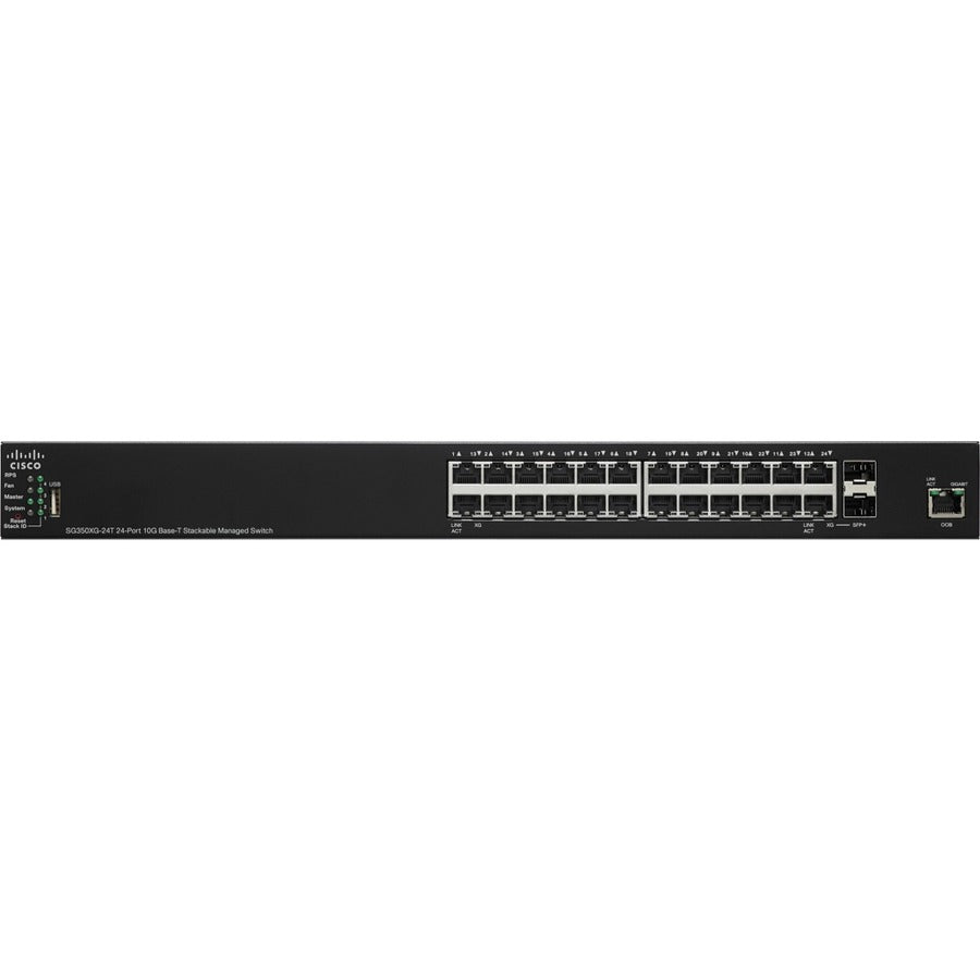 Cisco SG350XG-24T 24-Port 10GBase-T Stackable Managed Switch - 24 Ports - Manageable - 10 Gigabit Ethernet - 10GBase-T - Refurbished - 3 Layer Supported - Modular - Twisted Pair - 1U - Rack-mountable, Desktop