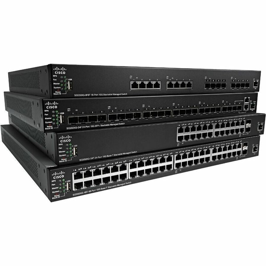 Cisco SG550XG-8F8T 16-Port 10G Stackable Managed Switch - 8 Ports - Manageable - 10 Gigabit Ethernet - 10GBase-T, 10GBase-X - Refurbished - 3 Layer Supported - Optical Fiber, Twisted Pair - Rack-mountable, Desktop - Lifetime Limited Warranty