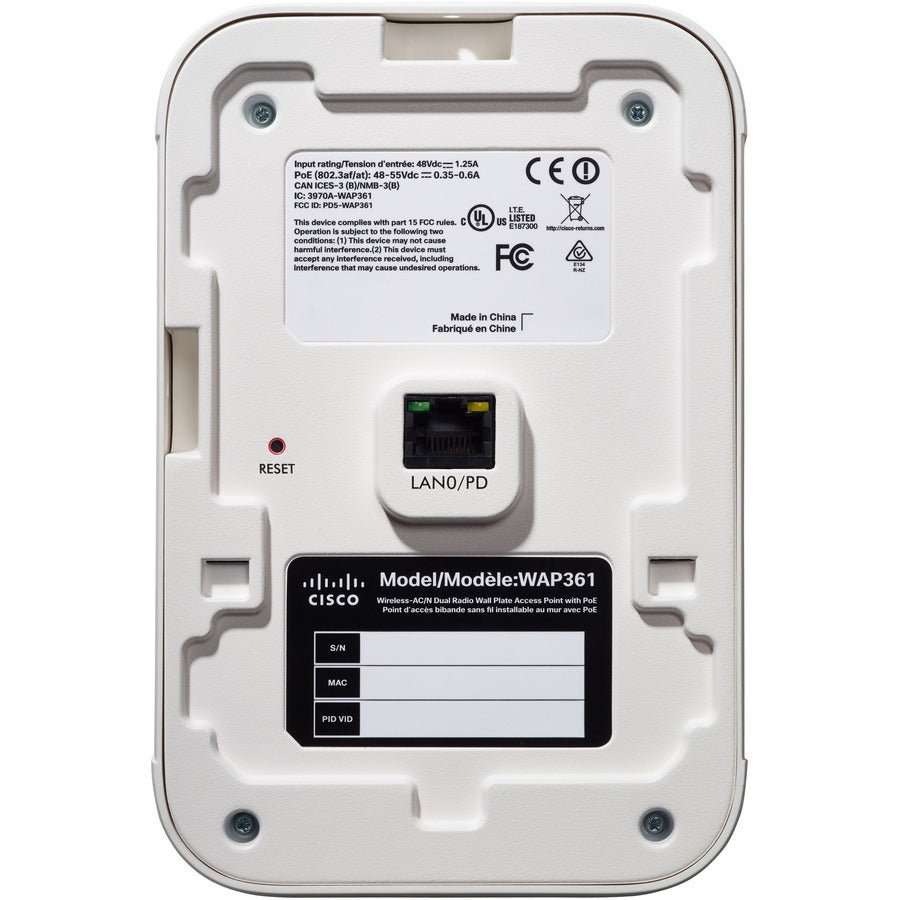 Cisco WAP361 Dual Band IEEE 802.11ac 1.20 Gbit/s Wireless Access Point
