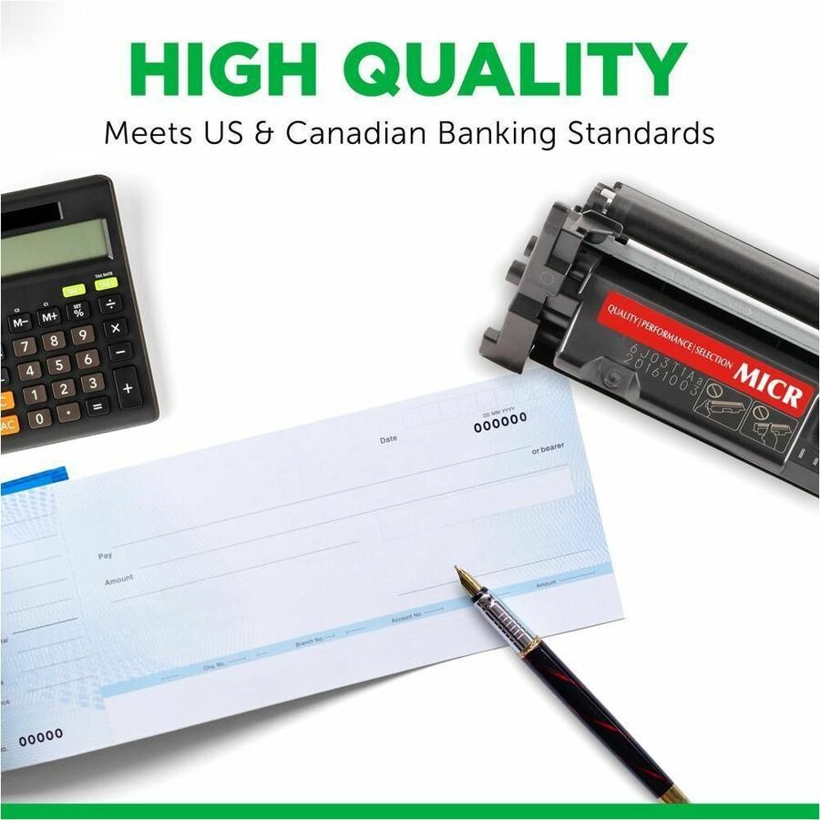 Clover Imaging remanufactured MICR cartridges provide businesses with the quality they require, the value they need, and the superior environmental solution they want. Clover Imaging MICR cartridges meet all U.S. and Canadian banking standards for signal strength and are manufactured using a special high adhesion toner formula, designed specifically for your printer, that significantly reduces the possibility of costly fees stemming from rejected checks.