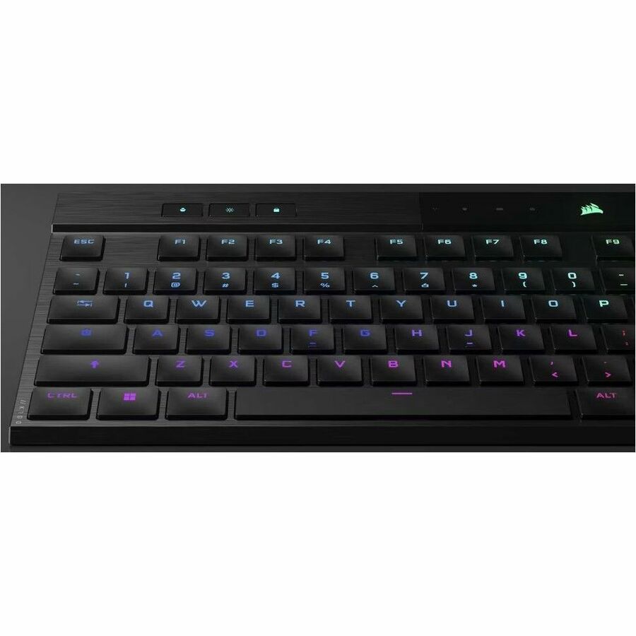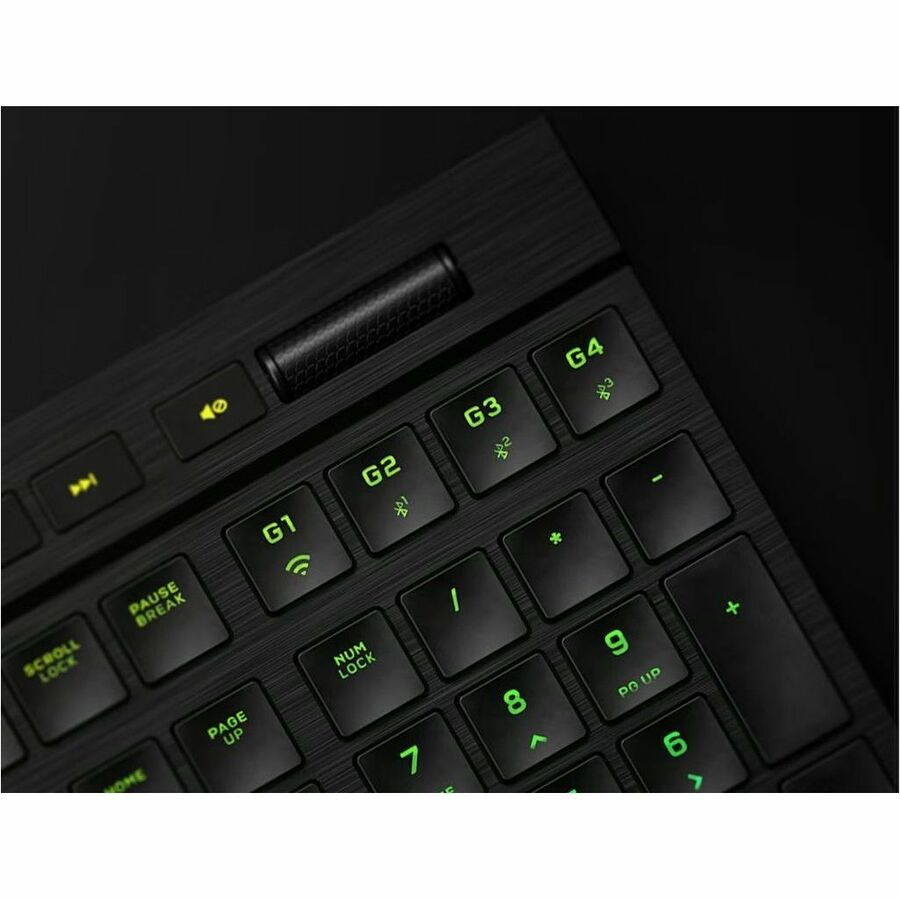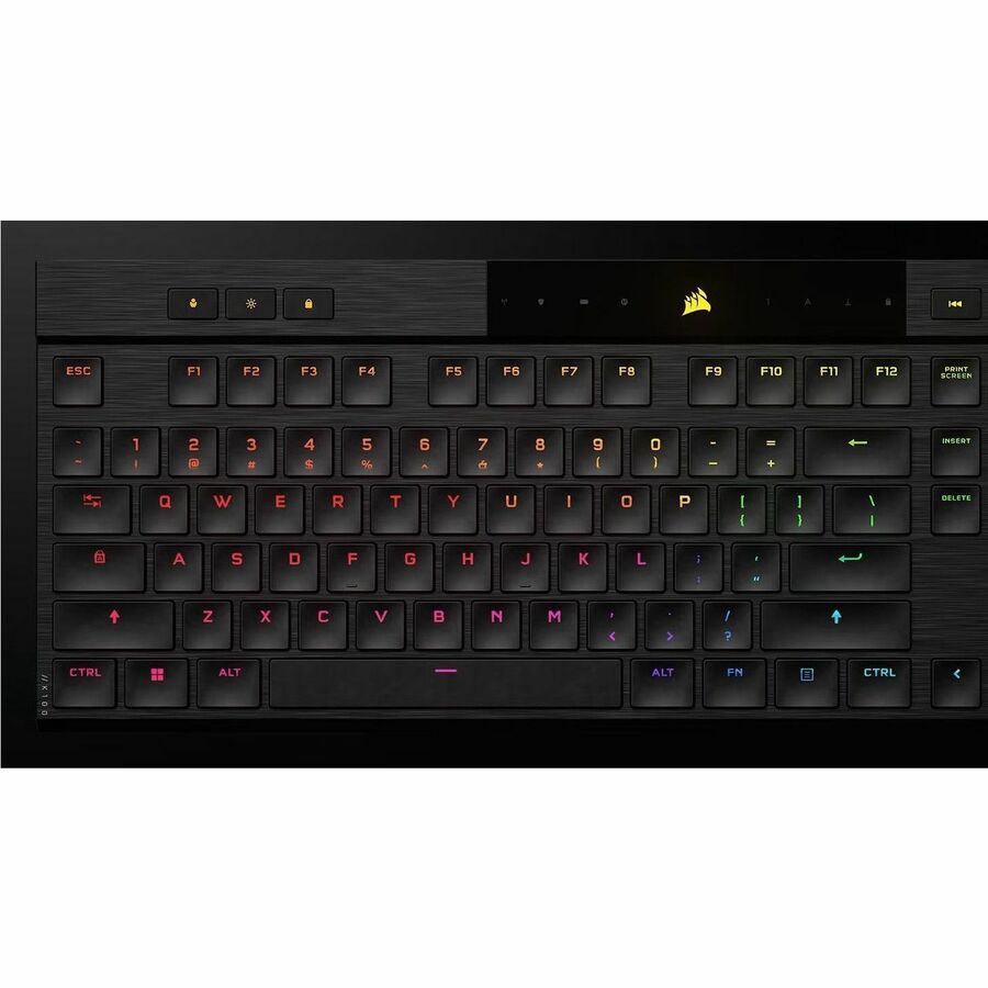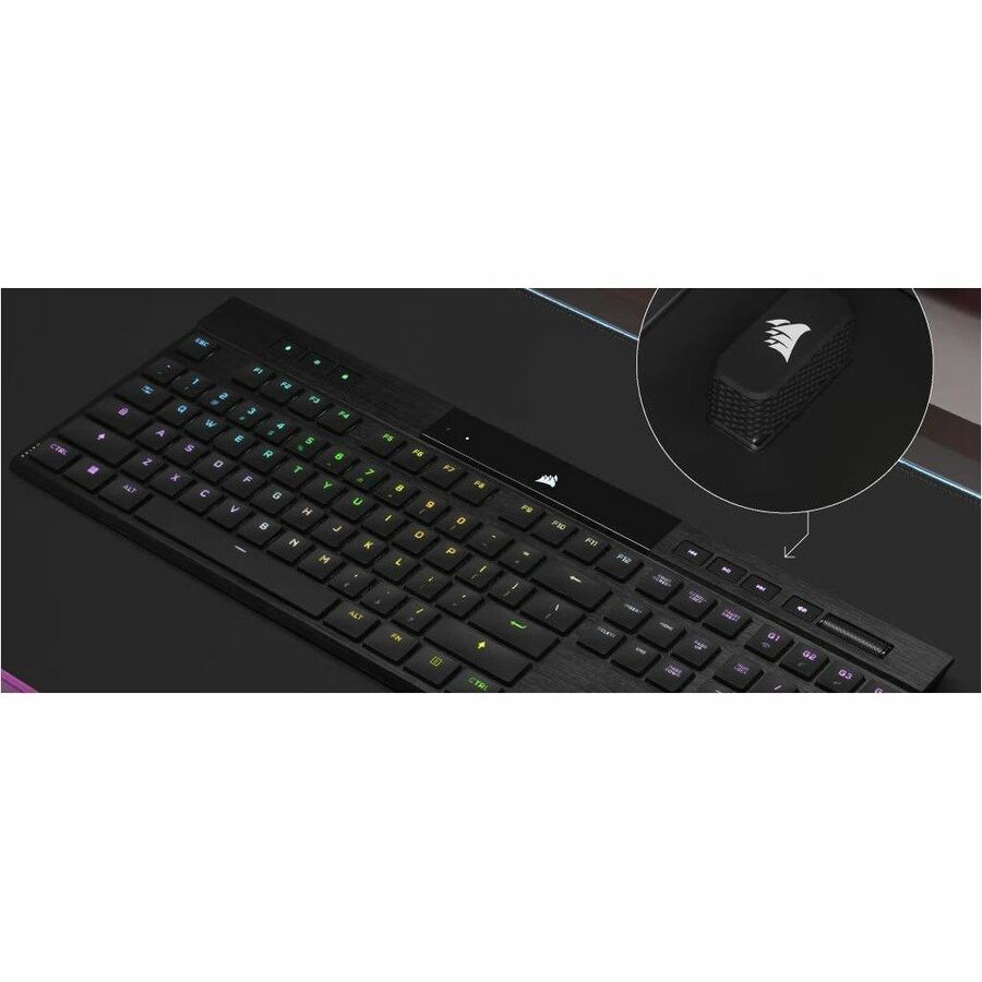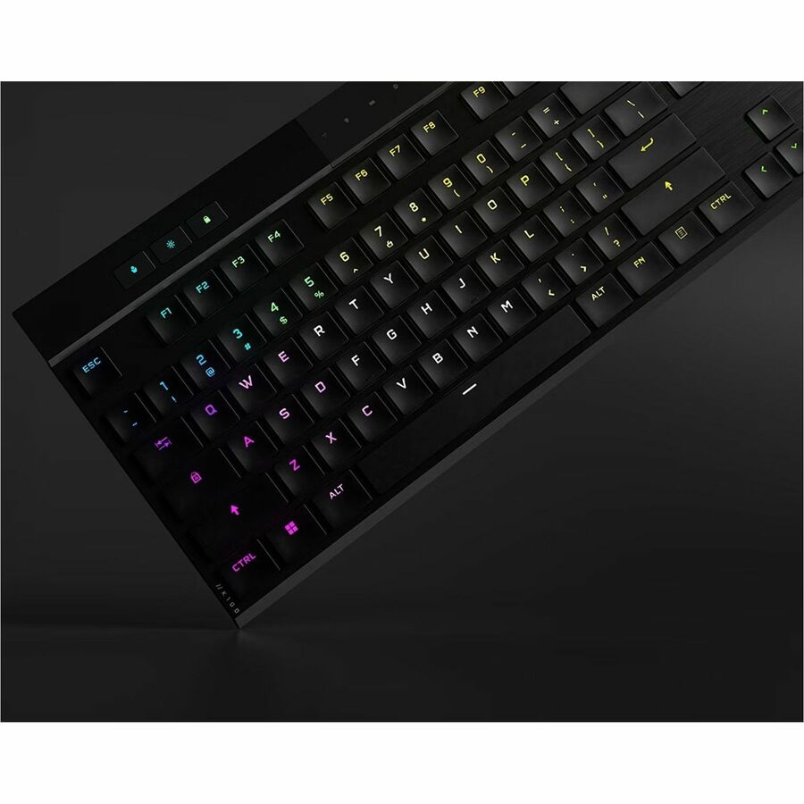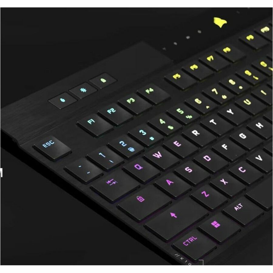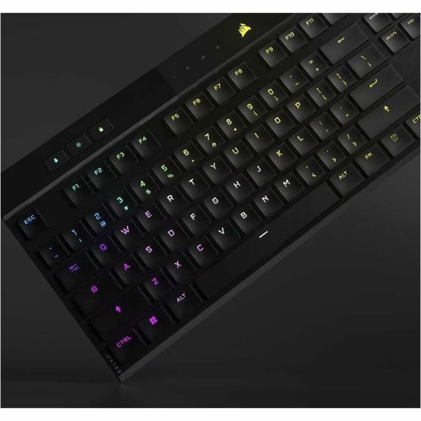 Corsair K100 AIR Gaming Keyboard - Wired/Wireless Connectivity - Bluetooth - 4.2 - 32.81 ft - USB 3.1 Type A Interface - RGB LED - 108 Key(s) - Windows Key, Volume Roller, Multimedia Hot Key(s) - Windows 10, macOS 10.15 - Desktop Computer, Notebook, Mobile Phone, Gaming Console, Xbox One - PC, Mac - Mechanical/MX Keyswitch - Black
