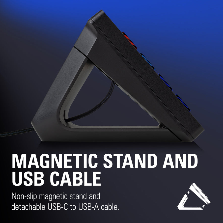 An expanded 8x4 grid provides a grand total of 32 LCD keys, each sporting crisp resolution and fluid playback. Easily customize them all with static or dynamic icons. Enjoy one-touch tactile control like never before. Get instant visual feedback to confirm your every command. And tap with confidence thanks to a non-slip magnetic stand that holds solid at the perfect angle.