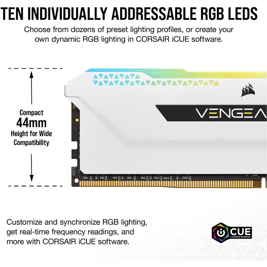Corsair Vengeance RGB pro SL DDR4 memory lights up your PC with dynamic, individually addressable RGB lighting, while delivering peak performance in 44mm-tall compact memory modules.