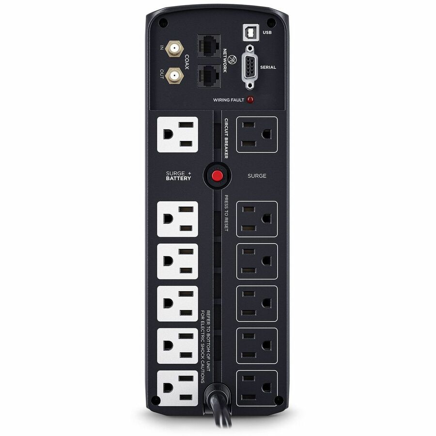 A mini-tower UPS with line interactive topology, the CyberPower Intelligent LCD CP1500AVRLCDTAA provides battery backup (using simulated sine wave output) and surge protection for desktop computers, workstations, networking devices, and VoIP phone systems. The CP1500AVRLCDTAA uses Automatic Voltage Regulation (AVR) to correct minor power fluctuations without switching to battery power, which extends battery life. AVR is essential in areas where power fluctuations occur frequently. The CP1500AVRLCDTAA comes with a three-year warranty (including coverage of batteries), a ,500,000 Connected Equipment Guarantee, and complies with the U.S. Trade Agreement Act (TAA).