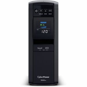 A mini-tower UPS with line interactive topology, the CyberPower PFC Sinewave CP1500PFCLCDTAA provides battery backup (using sine wave output) and surge protection for desktop computers, workstations, and networking devices requiring active PFC power source compatibility.