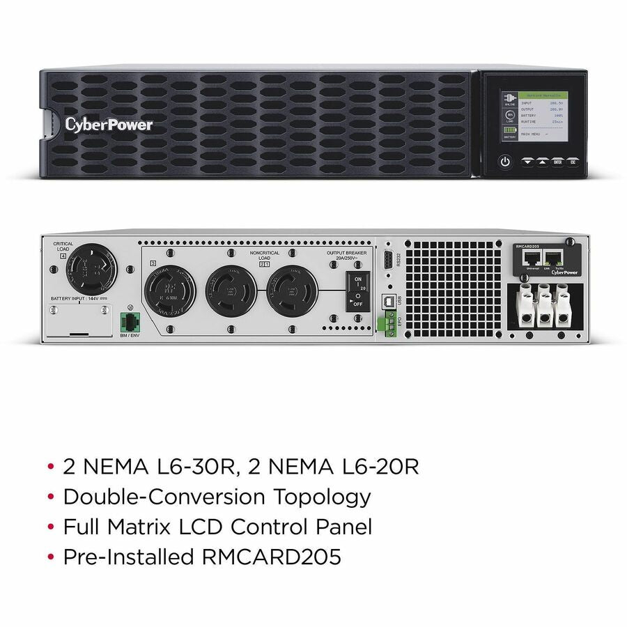 The CyberPower Smart App Online OL5KRTHD high-density design offers more power in less space. In fact, it can be configured into 2U of rack space or as a tower, compared to 3U and 4U for similar competitive UPS models - giving you more room to grow. The OL5KRTHD features double-conversion topology for seamless power protection and a pre-installed RMCARD205.