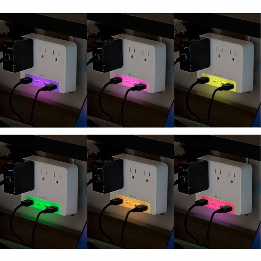 The CyberPower P3WUH lighted wall tap comes with more fun and less frustration. The energy efficient LED light allows you to choose a color and transform the mood of any room. The glowing LED also makes it easy to quickly find the 4 USB ports or 3 power outlets even in low lighting.