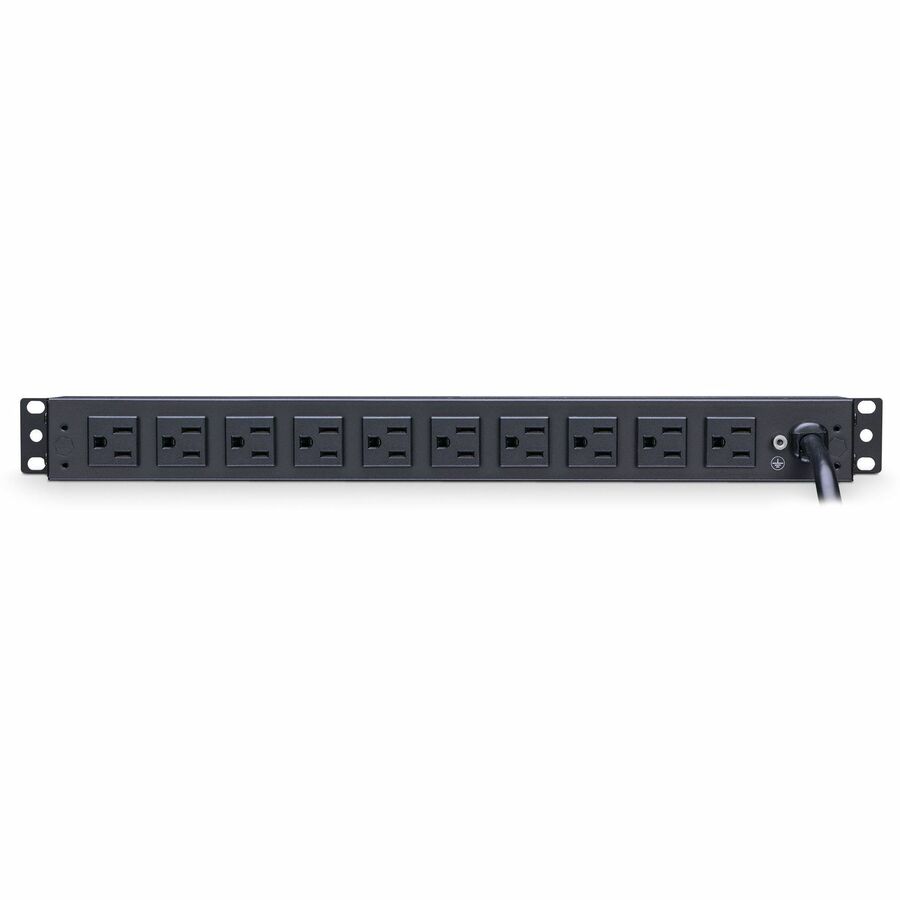The CyberPower PDU15B10R, a 10-outlet (rear) rackmount basic power distribution unit (PDU), provides 100 - 125 V 15A output. It distributes power to 10 NEMA 5-15R receptacles from a single NEMA 5-15P input with unfiltered electrical pass-through.