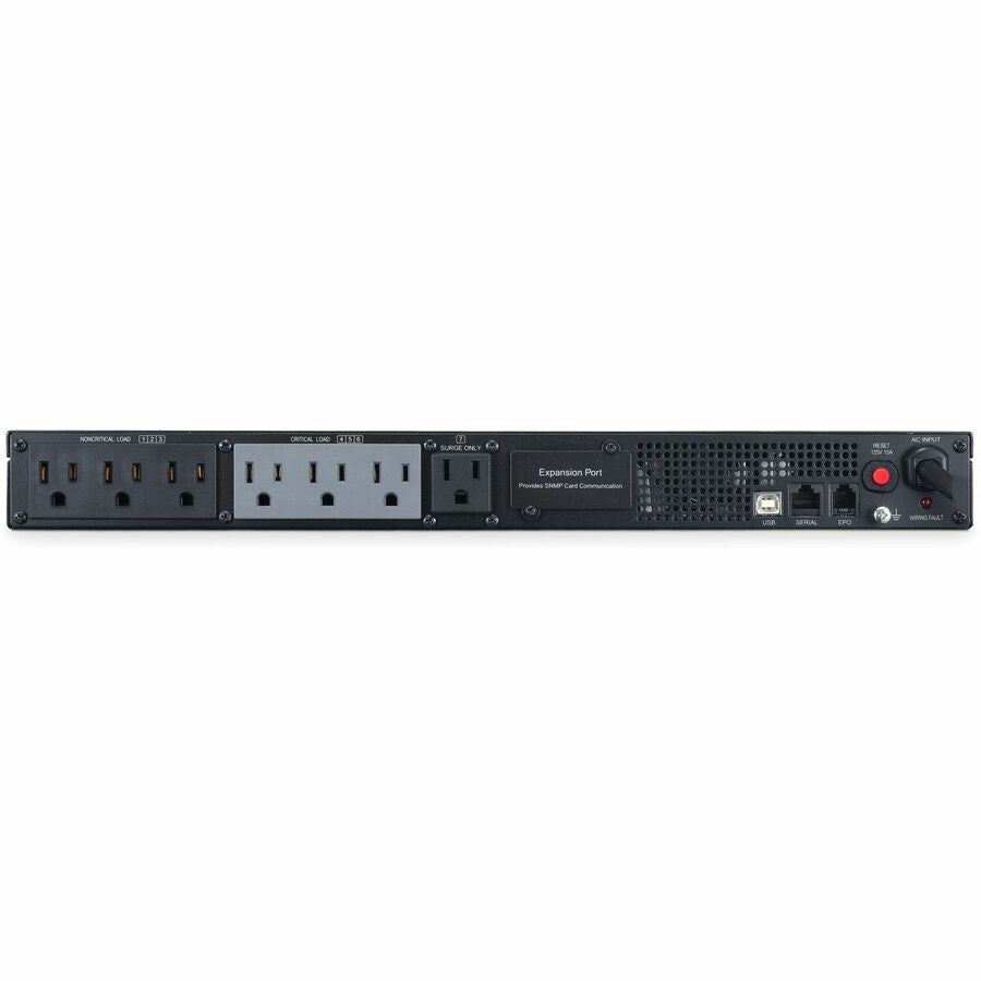 The PR500LCDRT1U unit has a capacity of 500VA/400Watts, (7) receptacles NEMA 5-15R, NEMA 5-15P Plug, and (2) maintenance-free, user-replaceable 6V/9Ah batteries. This unit offers connectivity via 1 HID USB, 1 DB9 serial and 1 emergency power off (EPO) port.