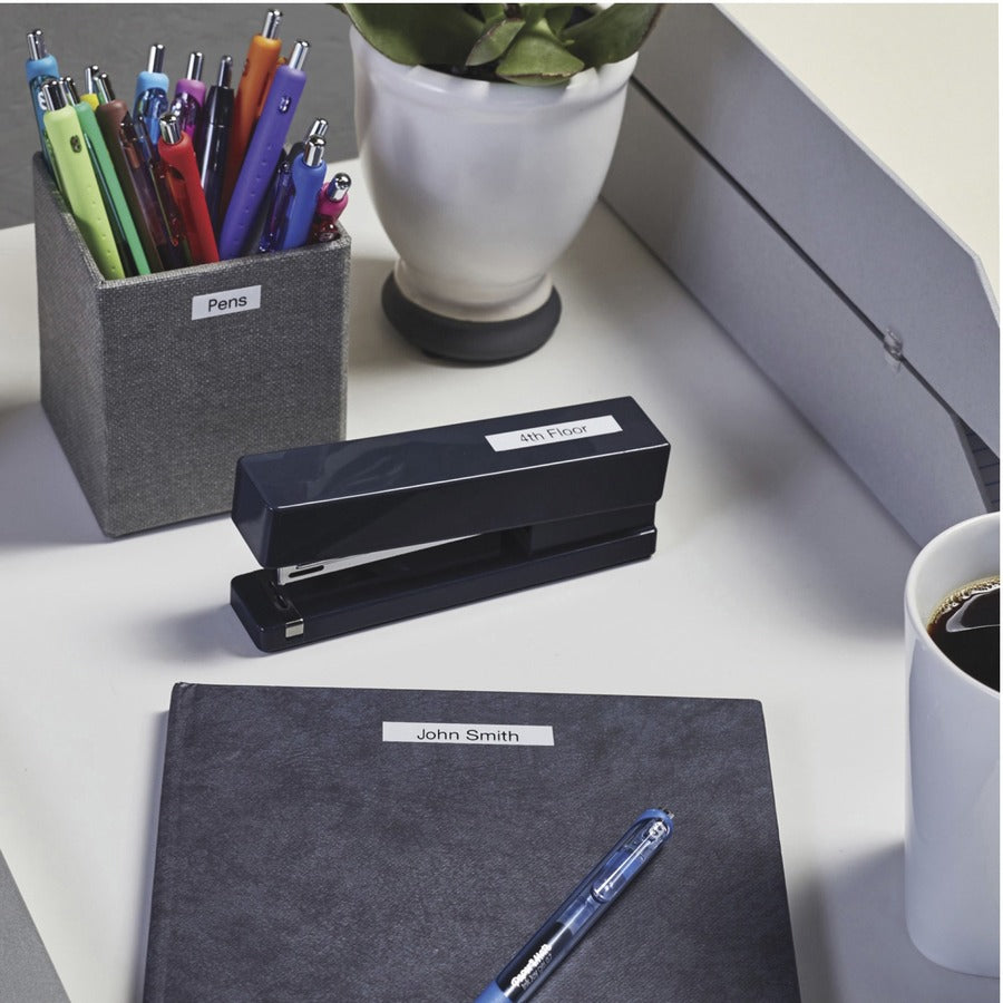 Durable, polyester-coated D1 tape is both water-resistant and sunlight-resistant and endures temperatures from zero to 194 degrees Fahrenheit. Patented D1 tape cartridge contains easy-peel, split-back tape. Special backing is split down the middle to make separation of tape backing a snap for fast and easy label application. Tape is designed for use with Dymo 1000, 2000, 3500, 4500, 5500, LM100 Plus, LM120P, LM150, LM155, LM160, LM200, LM210D, LM220P, LM260P, LM350, LM360D, LM400, LM420P, LM450D, LM500TS, LMPCII, LMPnP, LP100, LP150, LP200, LP250, LP300, LP350, and LabelWriter Duo.