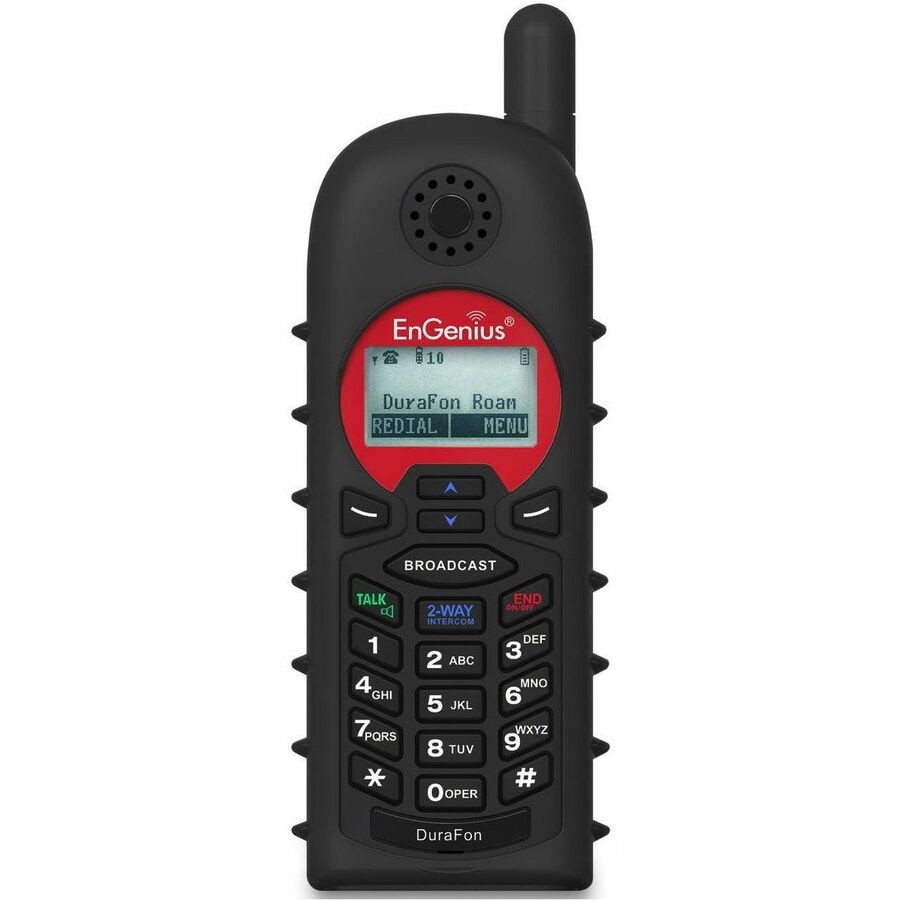 The DuraFon Roam handset functions as a long-range cordless phone and a digital two-way radio. Durable design and call hand-off capability between base units ensures coverage in even very demanding environments.