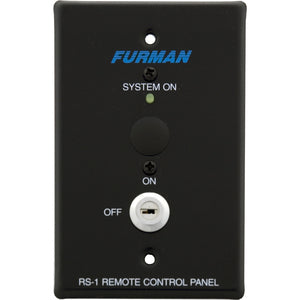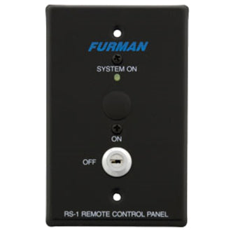 The RS-1 Remote System Control Panels provide a simple way to control AC equipment from one or more locations, using only inexpensive low-voltage wiring. The panel can be easily installed in a single gang switch box with a minimum depth of 1.5". Features include a locking key switch and a "System On" indicator LED. The RS-1 has a maintained contact "Start ON/OFF Sequence" push-button. The rear of the panel has a circuit board with a full size barrier strip for field wiring connections. The RS-1 can be used to control the Furman ASD-120 Sequenced Power Distributor, the Power Link, Power Port, Remote AC Controller, the MiniPort Power Relay series, or the PS-8R, PS-8R II or PS-PRO II Power Sequencers, as well as other equipment that needs a switch contact at a remote location.