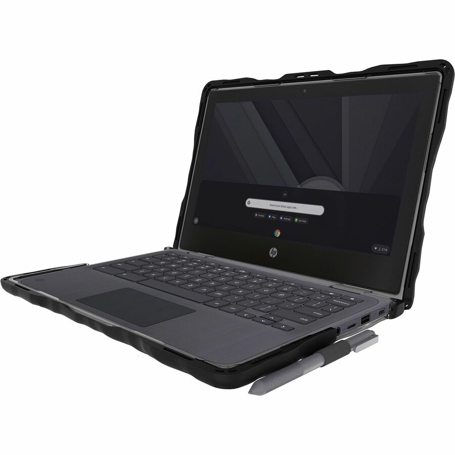 - Rugged Chromebook case custom-molded to fit HP Chromebook x360 11 G3 EE (2-in-1), offering maximum protection beyond mil-specs, exceeding MIL-STD-810G