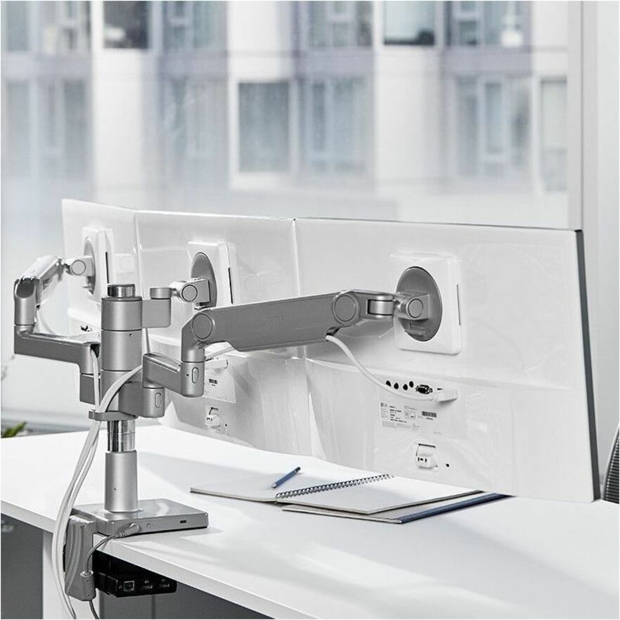 By easily setting monitors at an optimal distance and height, M/Flex increases usable desk space and allows the user to work in a healthy posture throughout the day.