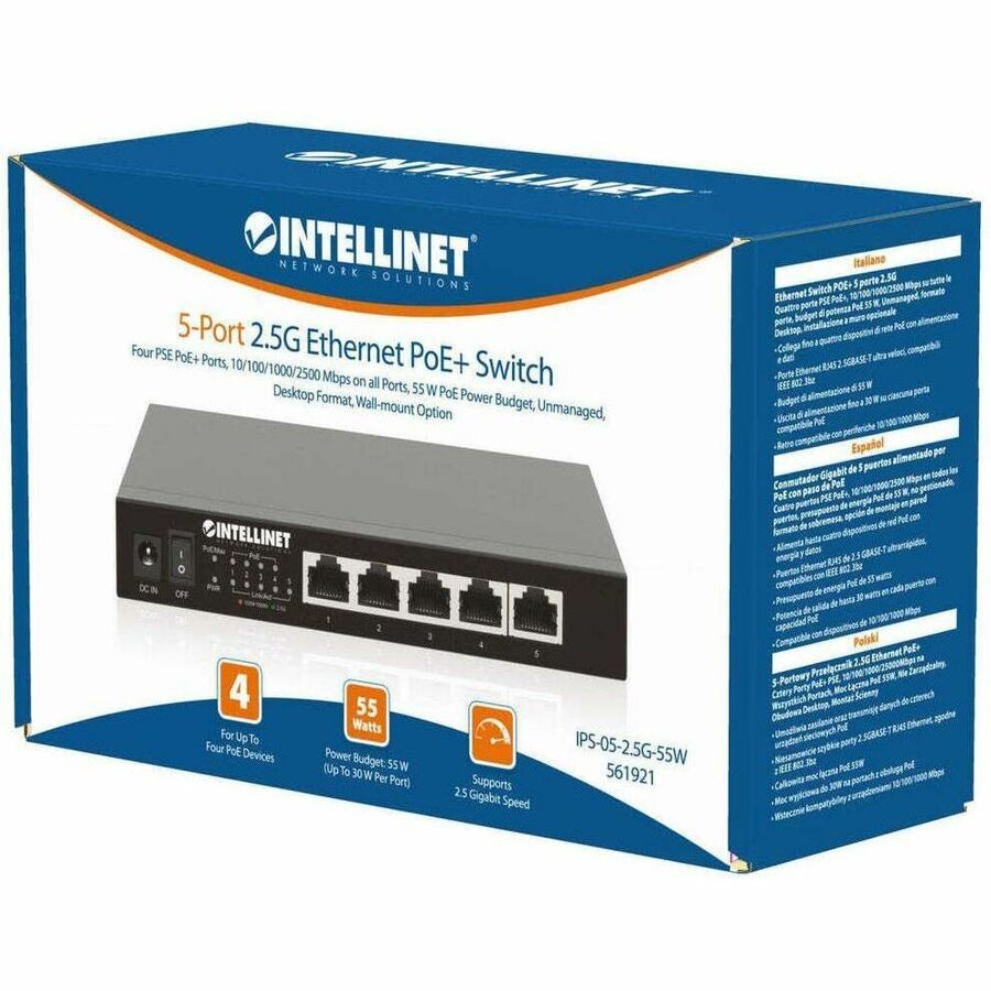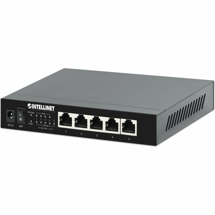 The 5-Port 2.5G Ethernet Unmanaged PoE+ Switch from Intellinet Network Solutions passes both data and electrical power to a number of PoE-compatible devices via standard Cat5e or Cat6 network cables. Equipped with five multi-gigabit Ethernet PoE+ copper ports, this Switch can power wireless LAN bridges, VoIP phones and more while delivering network speeds up to 2500 Mbps.