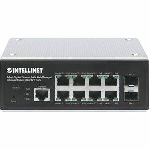 The 8-Port Gigabit Ethernet PoE+ Web-Managed Industrial Switch with 2 SFP Ports from Intellinet Network Solutions was designed to give you the network connections and device power you need in places that are less than calm or temperate. With its rugged, IP30-rated protective metal housing, the switch operates reliably and quietly, even in extreme temperatures that range from -40 to 185°F (-40 - 85?). In combination with its DIN-rail mounting option and two safe redundant DC power inputs with power failure alarm and plenty of other safety features, this switch is ideal for IoT applications in Industry 4.0 and more.