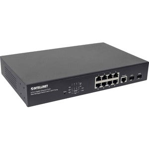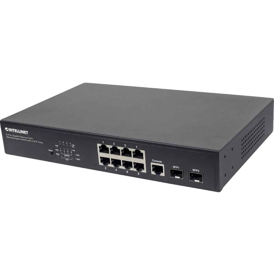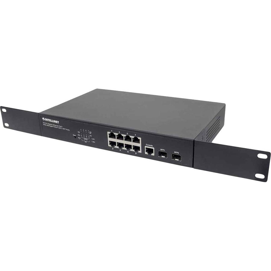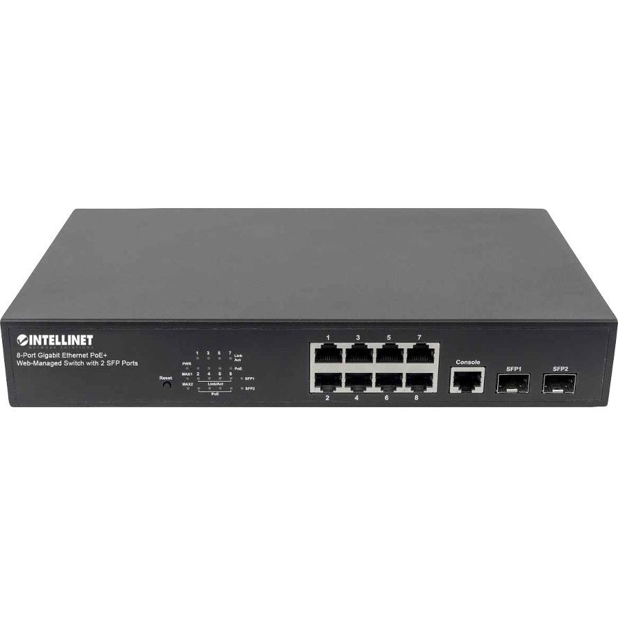 Intellinet Network Solutions 8-Port Gigabit PoE+ Web-Managed Switch with 2 SFP Ports, 140 Watt Power Budget, Desktop, Rackmount with Ears
