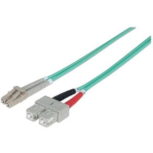 Intellinet Network Solutions Fiber Optic Patch Cable, LC/SC, OM3, 50/125, Multimode, Duplex, Aqua, 10 ft (3 m)