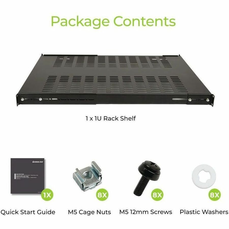 IOGEAR Adjustable Depth Heavy Duty Fixed Rack Shelf - Vented
