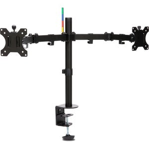 The SmartFit® system makes finding the right height for maximum comfort as easy as 1-2-3. Simply match your hand size to the color on the provided chart, set the height to your color, and you're done. Wide adjustment range delivers ±90° swivel, ±180° rotation (for landscape or portrait orientation), and ±45° monitor tilt adjustment for ergonomic comfort. Cable management system for clutter free desktop Dual. Extendable arm allows upto 15-7/10" distance adjustment. VESA. For monitors up to 17.6 lbs (32") per arm. Includes C-clamp and grommet fastener. Black.