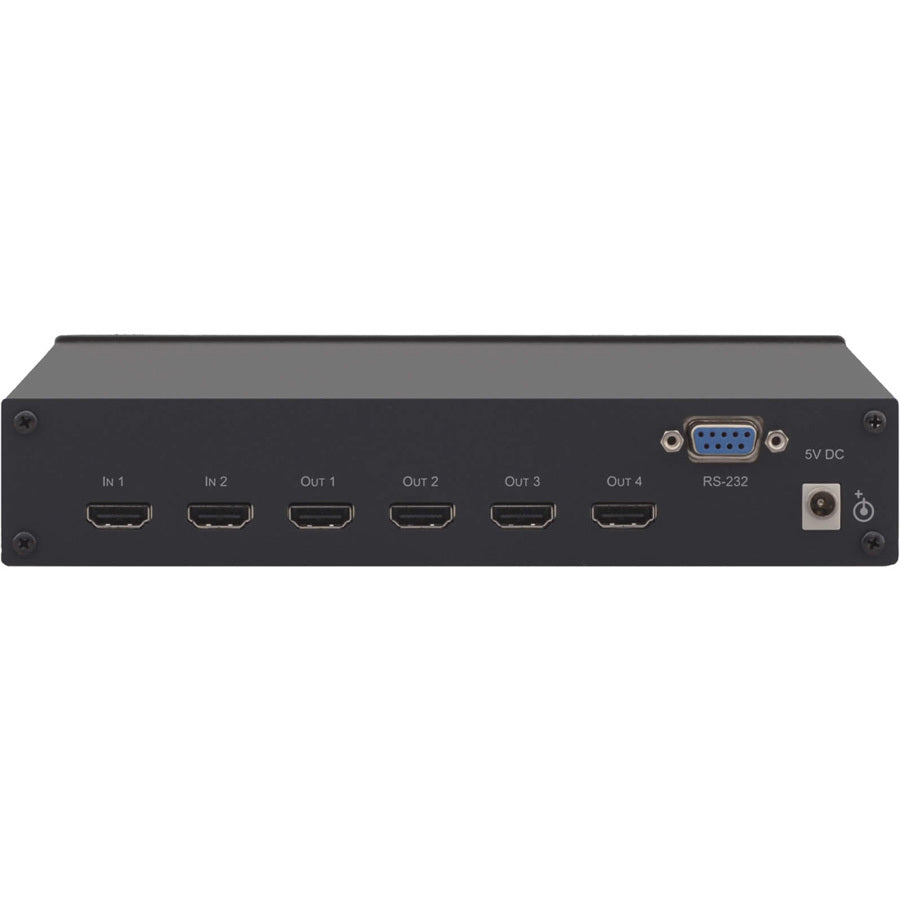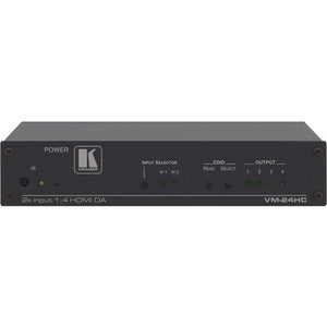 The VM-24HC is a high-performance switcher and distribution amplifier for HDMI signals. The unit accepts one of two HDMI inputs and distributes the selected signal to four HDMI outputs.