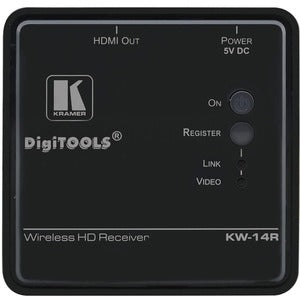 The KW-14R is a high-definition, wireless, HDMI receiver for indoor use. Up to four KW-14R receivers can receive from one KW-14T transmitter and up to three KW-14T transmitters can be paired with one KW-14R receiver.