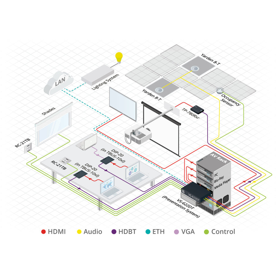 - Easy and Elegant Installation - Single cable connectivity for both HDBaseT signals and power. Compact MegaTOOLS™ fan-less enclosure for dropped-ceiling mounting, or side-by-side mounting of 2 units in a 1U rack space with the optional RK-T2B rack adapter.