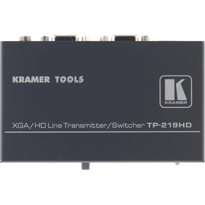 The TP-219HD is a high-performance twisted pair transmitter for computer graphics signals with resolutions ranging from VGA through UXGA and higher as well as HDTV signals up to 1080p. It takes one of two inputs as selected by the user and converts it to a twisted pair signal.
