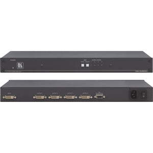 The VM-4HDCPxl is a high-performance distribution amplifier for DVI signals. The unit reclocks and equalizes one input signal and distributes it to four identical outputs.