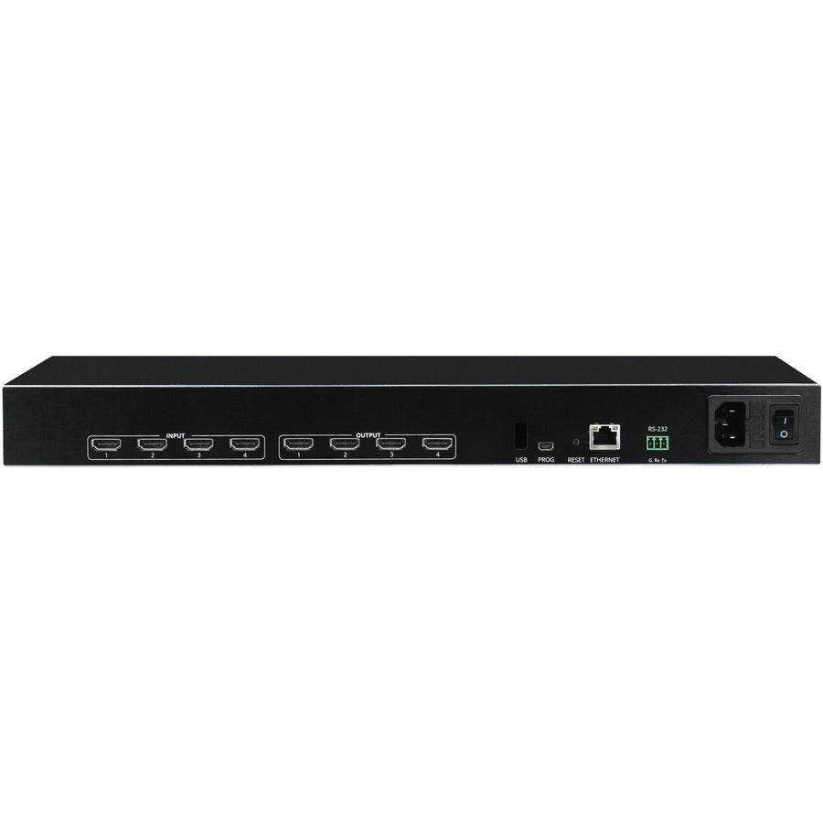 - Convenient Unit Control and Configuration Options - Local control via front panel switching, memory, lock and EDID buttons, and Input/Output LED display. Distance control via user-friendly embedded web pages via the Ethernet, Protocol 3000 API, and RS-232 serial commands transmitted by a PC, touch screen system or other serial controller.