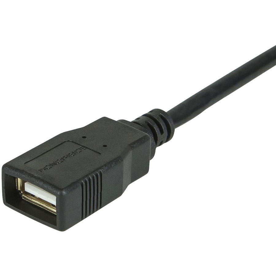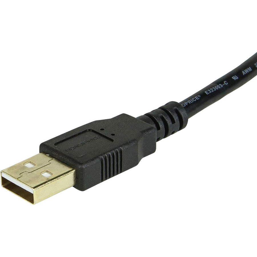 This cable features a standard USB A Male connector on one end and an A Female connector on the other and is particularly useful for extending the reach of a USB cable with a proprietary connector or fixed device (such as an AC adapter) on one end. The cable uses 28 AWG conductors for the data lines and 24 AWG conductors for the power lines. The connectors are gold plated to ensure smooth, corrosion free connections.