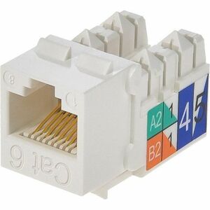High speed, Cat6 grade, easy to use, modular RJ45 Keystone jack. 110 type IDC. 90 degree connection. To be used with keystone wall plate or panel. Wiring diagram next to wire clips.