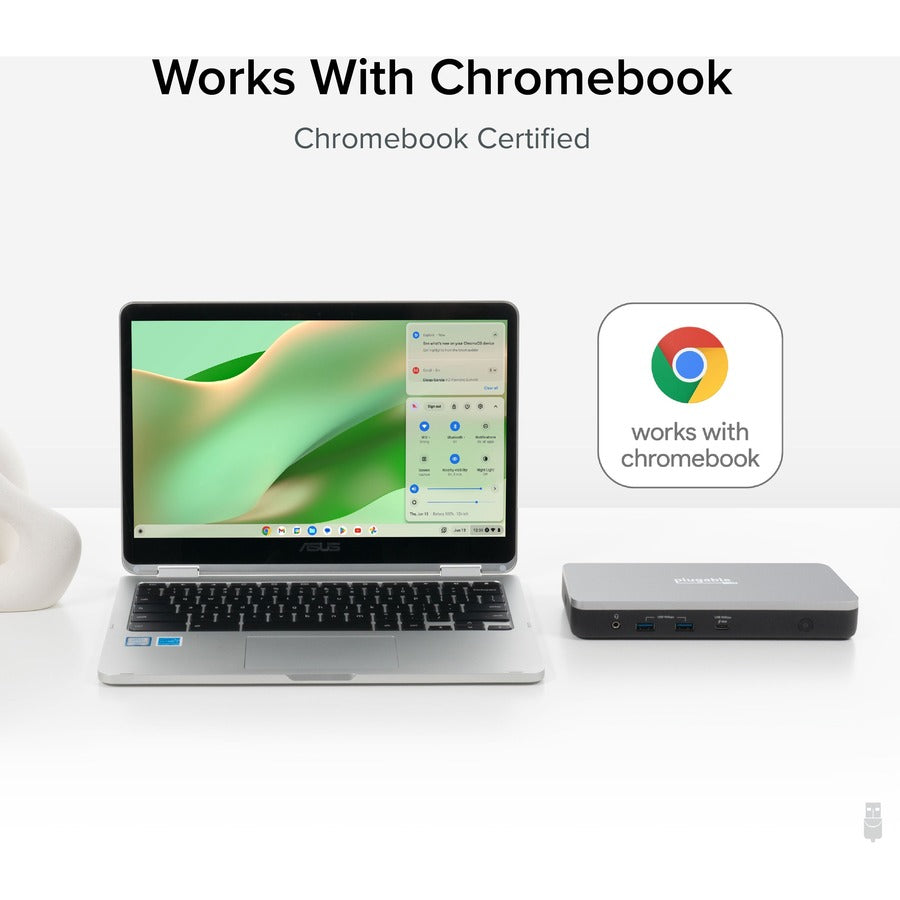 This Plugable docking station provides full functionality to Windows 11 and Windows 10, systems with Thunderbolt 3 or 4, USB4, and USB-C. The dock can also be used on Macs, however due to lack of MST functionality in macOS, the USB C dock only allows for one additional extended display. The second display will be mirrored. This product works with devices capable of running the latest version of ChromeOS and has been certified to meet Google's compatibility standards. Google is not responsible for the operation of this product or its compliance with safety requirements. Chromebook and the Works With Chromebook badge are trademarks of Google LLC.