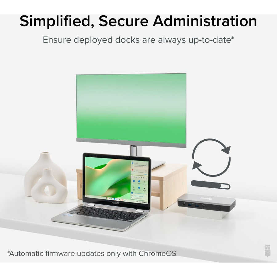 There is more to "Works With Chromebook" than just a compatibility statement. It's actually a pretty tough badge to acquire. That's because Google thoroughly tests laptop docking stations that carry the claim to ensure the device will "work seamlessly with current and future ChromeOS devices". It comes with other features, too, like automatic secure firmware updates while the USB-C dock is connected to a Chromebook laptop. Perfect for ensuring employees always have the latest compatibility improvements and features.