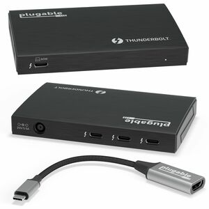 The Plugable Thunderbolt 4 and USB4 Hub with 60W Charging (TBT4-HUB3C), USB C mini docking station, delivers a pure USB-C experience that you won't find anywhere else. All of your devices-Thunderbolt 4, USB4, Thunderbolt 3, or USB-C-will automatically work at their peak potential as supported by the host. Everything you need for an excellent Windows or Macbook Pro Hub, or a Mac mini dock. An included USB-C to HDMI 2.0 adapter simplifies connecting an additional monitor, and the included .8m Thunderbolt 4 cable gives you more flexibility to set up your desk in any home, office, or hotdesking environment.