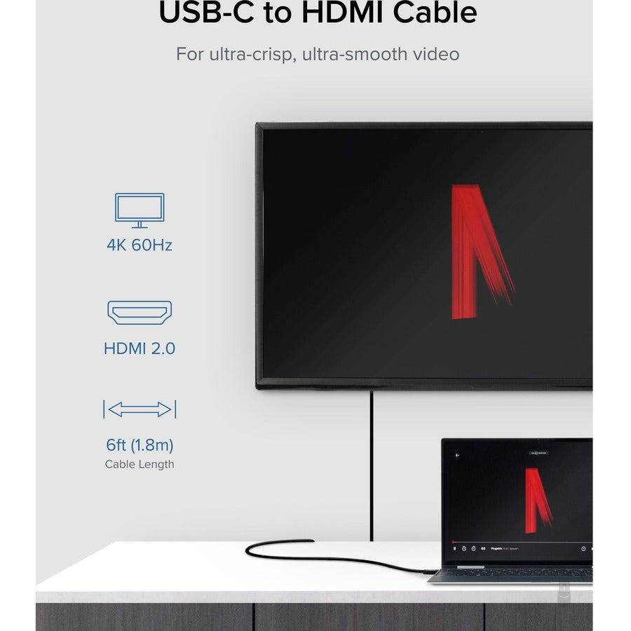 Plugable USB-C to HDMI 2.0 cable (6ft/1.8m)